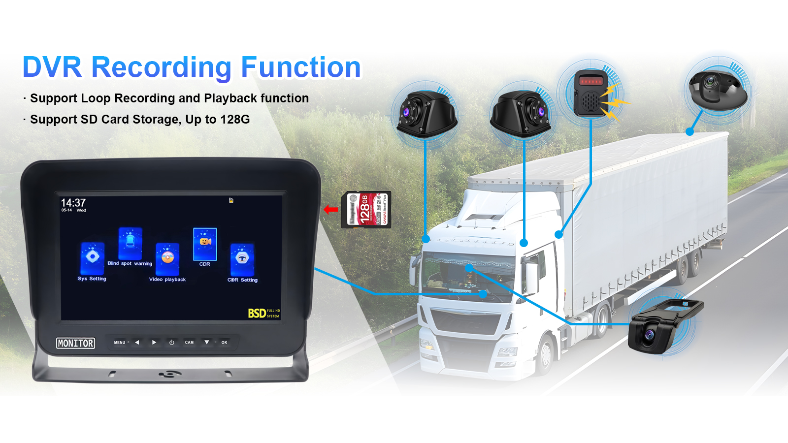 Carleader 10,1 дюйма транспортного средства BSD Smonering Система, предназначен для грузовиков, автобусов, экспресс -автомобилей и специальных транспортных средств. Эта система разумно обнаруживает усовершенствованные алгоритмы изображений ИИ и высокопроизводительный чип, разумно обнаруживает пешеходов, велосипедистов, мотоциклов, фургонов и животных в слепых пятнах, обеспечивая своевременные оповещения, чтобы предотвратить столкновения.