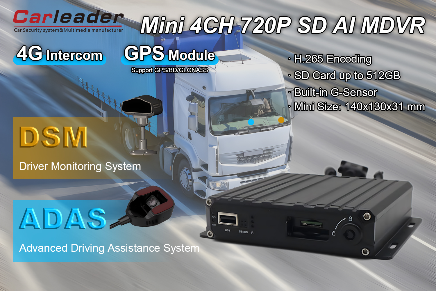 Карлидер4-канальный интеллектуальный мобильный видеорегистратор с искусственным интеллектом и камерой DSM и ADAS Идеально подходит для использования в коммерческих автопарках, общественном транспорте, транспортных средствах правоохранительных органов, системах безопасности личных и коммерческих транспортных средств