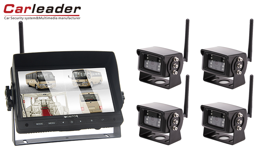 Карлидер7-дюймовая цифровая беспроводная 2-канальная камера с разделенным дисплеем 2,4G, высокопроизводительная беспроводная система мониторинга с поддержкой двух разделенных дисплеев в сочетании с двумя беспроводными камерами. 7-дюймовая цифровая панель, соотношение изображения 16:9, разрешение 1024 x 600 (RGB) обеспечивают водителю высокую четкость вождения.
