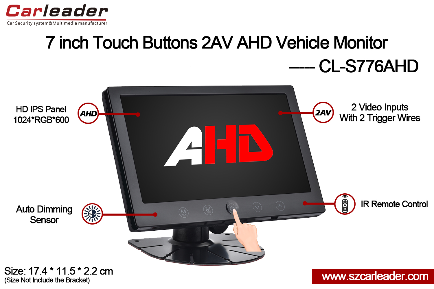 Карлидер7-дюймовый IPS-экран, 2-канальный входной сигнал AHD, сенсорные кнопки, монитор для тяжелого транспортного средстваидеально подходит для автомобильного, охранного, морского и промышленного использования.сочетает в себе долговечность, гибкость и высокое качество отображения в одном надежном корпусе.