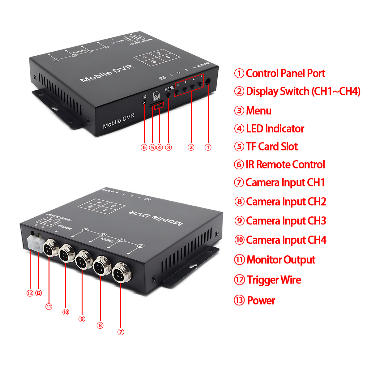 * Встроенная запись DVR: поддержка функции циклической записи, запись отснятого материала непосредственно на TF-карту, максимальная емкость 512 ГБ для увеличения времени записи.
